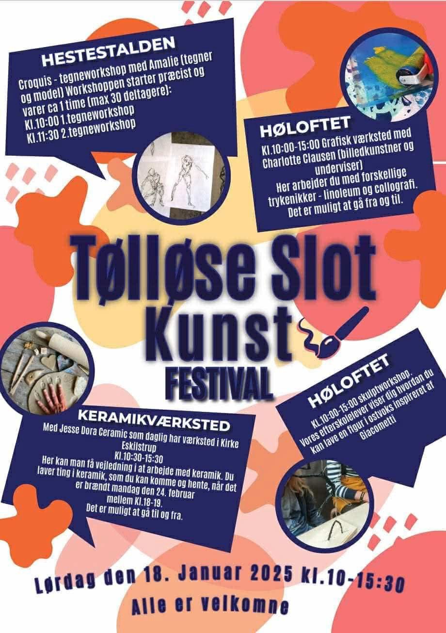 Slotsefterskole afholder kunstfestival den 18. januar 2025. Alle er velkomne. Vel mødt til Jubilæumsåret i Tølløse.